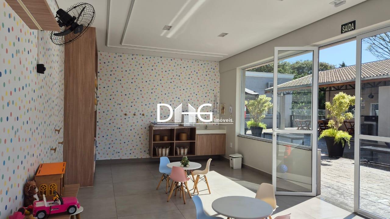 O condomínio tem piscina, espaço gourmet, salão de jogos, brinquedoteca, entre outros.