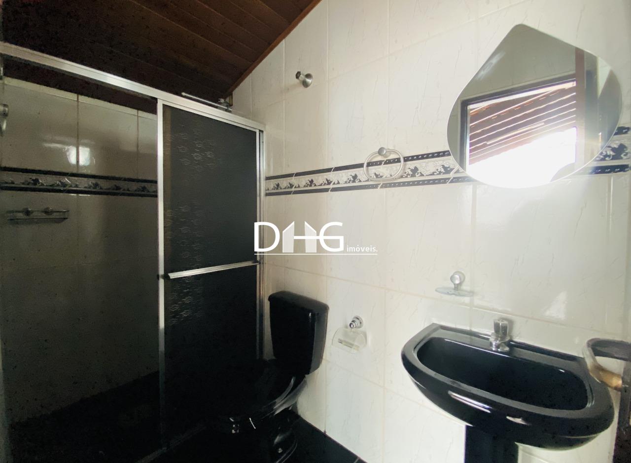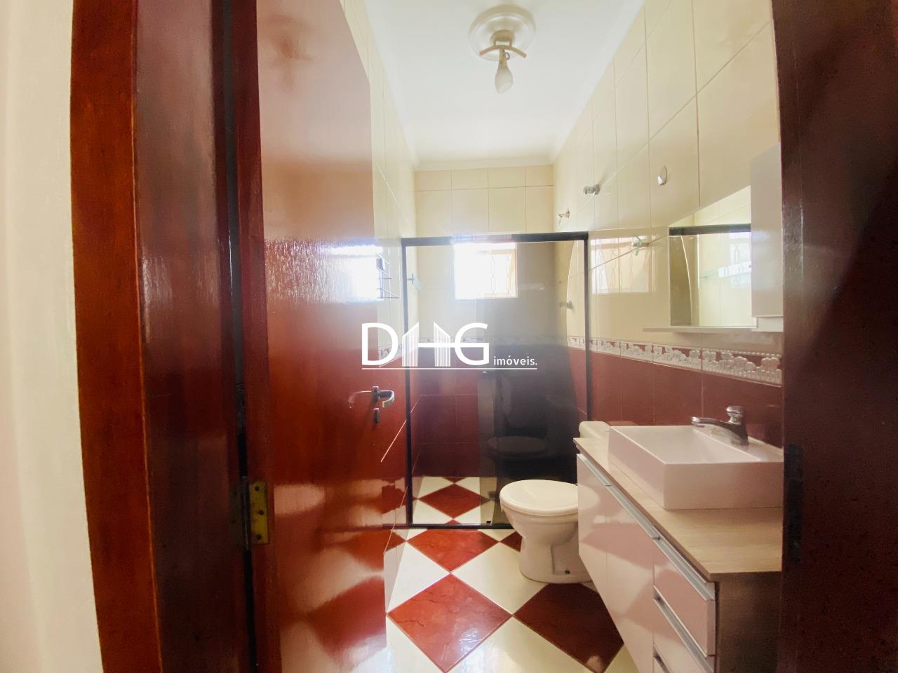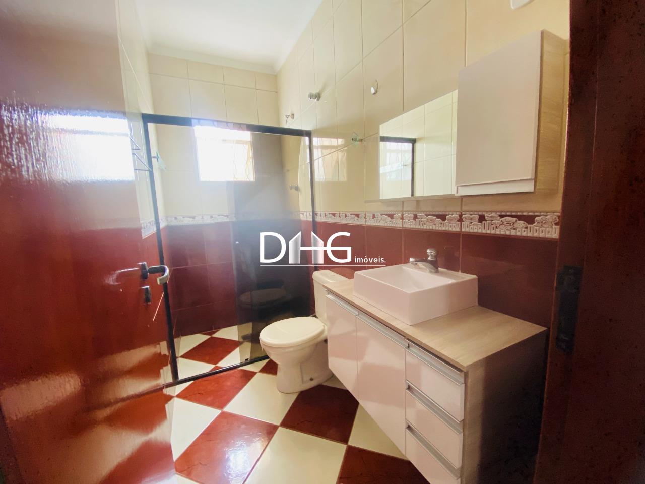 - Banheiro social com box de vidro e armário