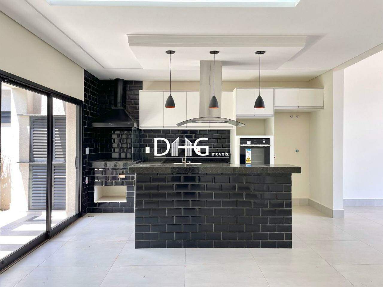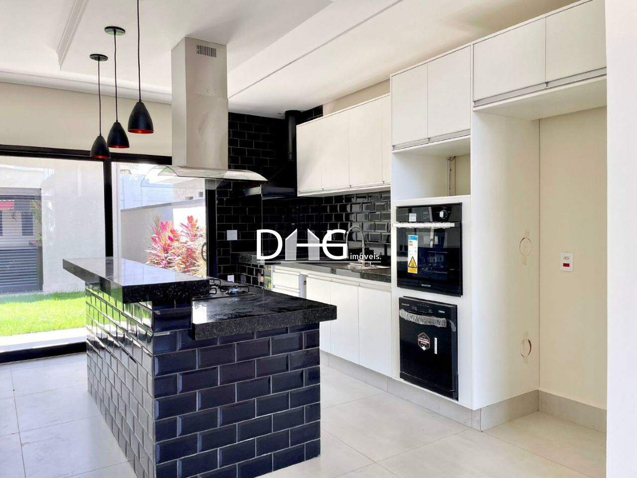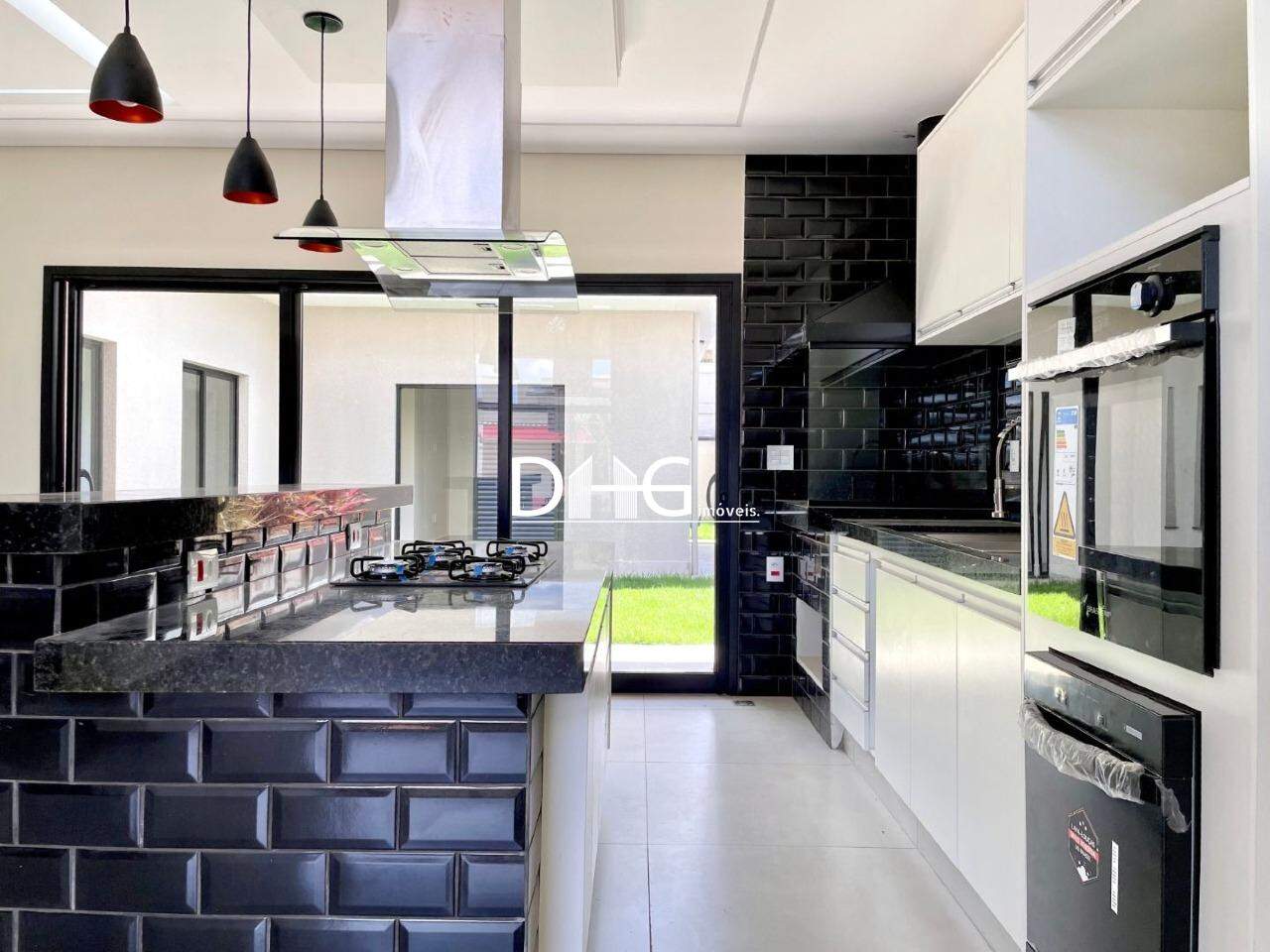 Casa com 3 dormitórios sendo 2 suítes, banheiro social, cozinha equipada com churrasqueira, pia gourmet, torre com máquina de lavar louças, forno de embutir Brastemp a gás, espaço para microondas, espaço para geladeira grande com 1 MT de largura, armários em MDF, ilha central com Cooktop Brastemp 5 bocas e coifa tipo ilha central com exaustor e depurador e balcão para refeições, sala de jantar com teto rebaixado em gesso drywall e Luz de LED embutido, lavado, escritório, dispensa com prateleiras em mármore branco, lavanderia, com tanque para lavar roupas e louça tamanho grande, espaço para máquina de lavar roupas e armário em MDF, no corredor externo próximo a garagem armário para guardar ferramentas etc.