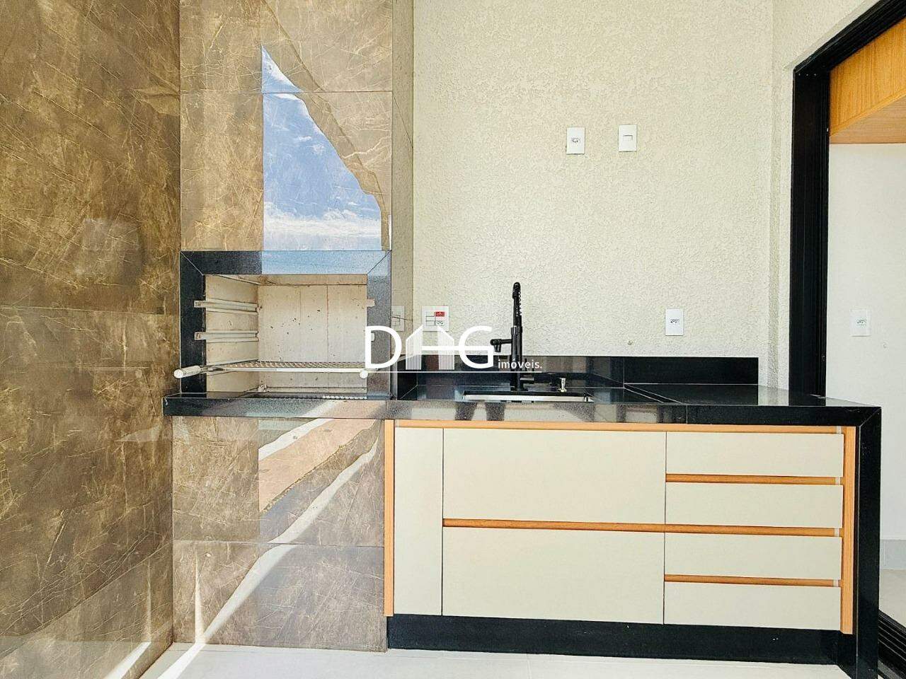 Área gourmet com planejados e churrasqueira a carvão.